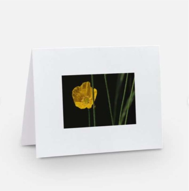 1 Stück, Faltkarte DIN A6 horizontal “gelb auf schwarz“ mit weißem Briefumschlag